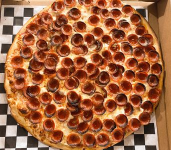 Pepperoni, Ronicups, Italian Sausage, Ham, Meatballs, Mushrooms, Onions, Basil, Feta, Cherry Tomatoes, Green Peppers, Spinach, Pineapple, Black Olives, Banana Peppers, Jalapeño Peppers, Fresh Garlic and Bacon